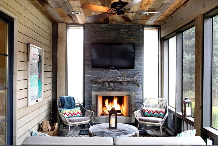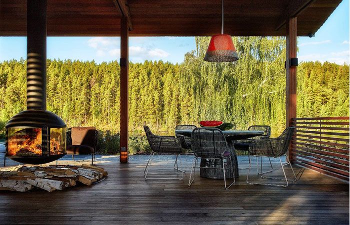 - Когато проектирате разширение, можете да осигурите присъствието Пожарнакоито ще се затоплят вечер или ще позволят отопление на затворено пространство.