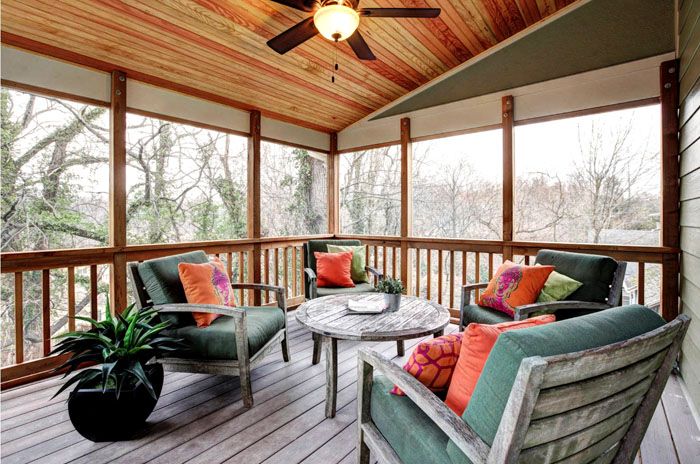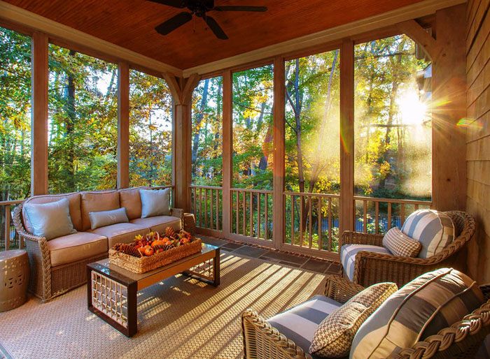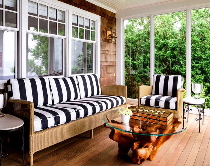Важна роля играе интериорната декорация на верандата, тъй като тя трябва да допринася за комфортна почивка, приятна за окото и да не изисква често обновяване. Ако помещението не се отоплява, тогава се обръща специално внимание на способността на довършителните материали да издържат на температурни промени и влажност.