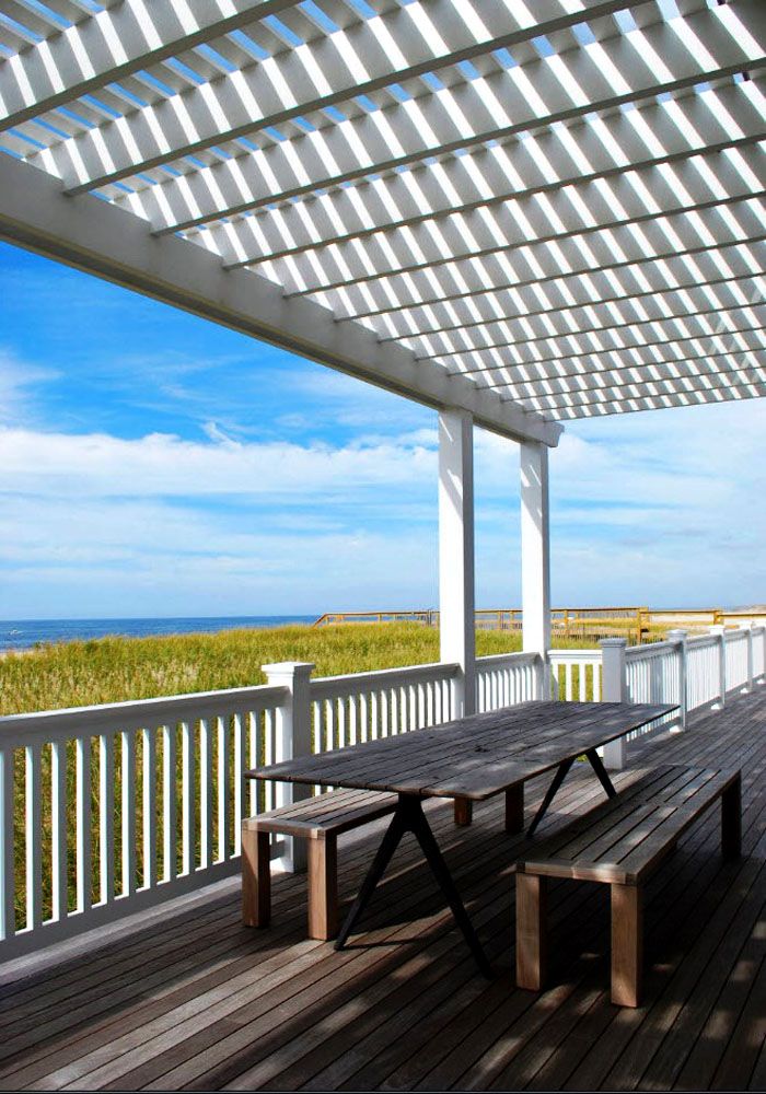 - Сенниците и заграждащите конструкции ще предпазват от вятър, топлина и валежи, но е желателно те да са леки. За тези цели можете да използвате рамково (алуминиево) остъкляване, стационарни сеннициизработени от влагоустойчив плат или дистанционно управляеми плъзгащи се системи, които се разширяват над платформата, ако е необходимо.