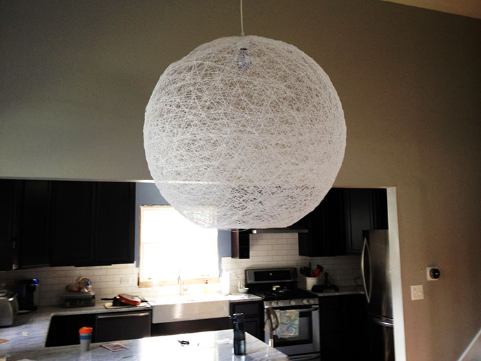 โคมไฟ DIY จากเธรดดูน่าสนใจมาก ตัวเลือกนี้เหมาะสำหรับโคมไฟกลางคืนและโคมไฟติดผนังขนาดเล็ก
