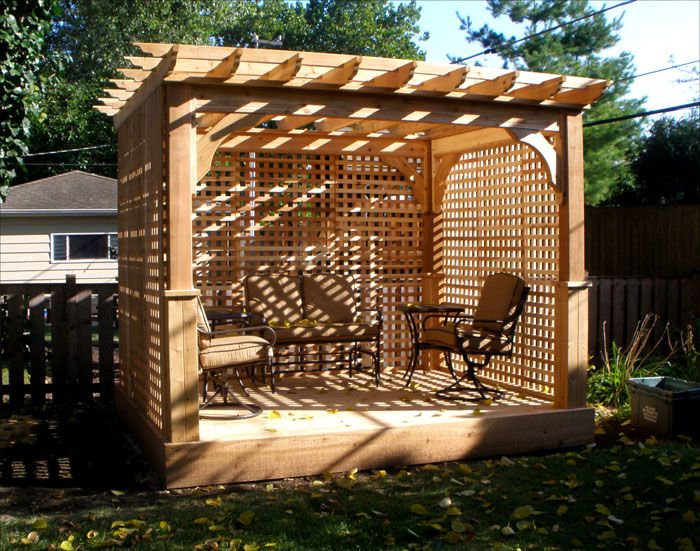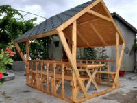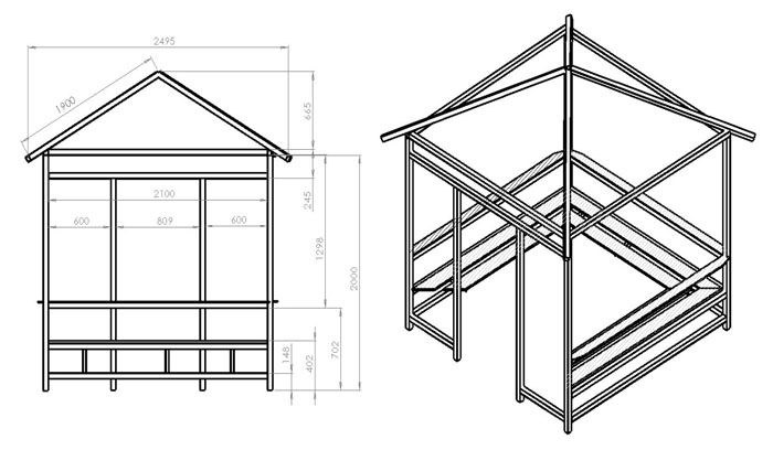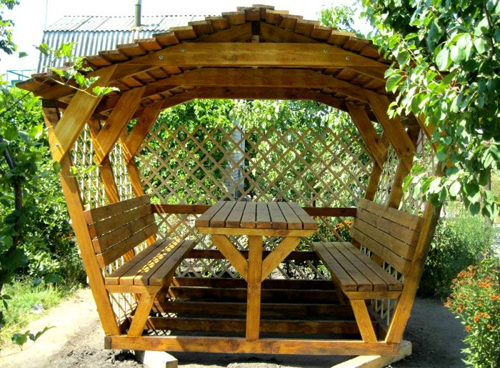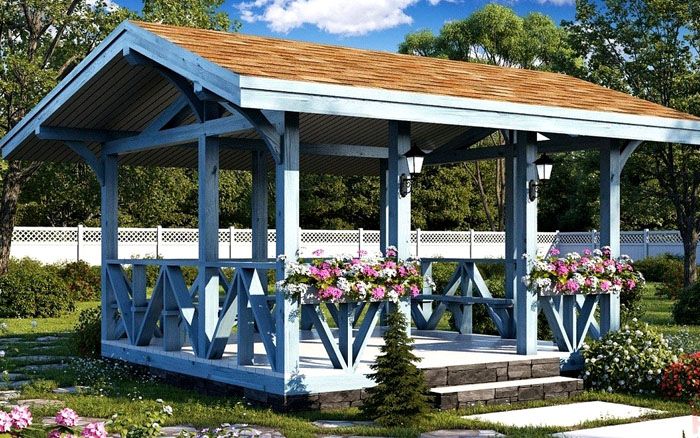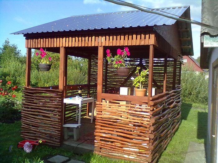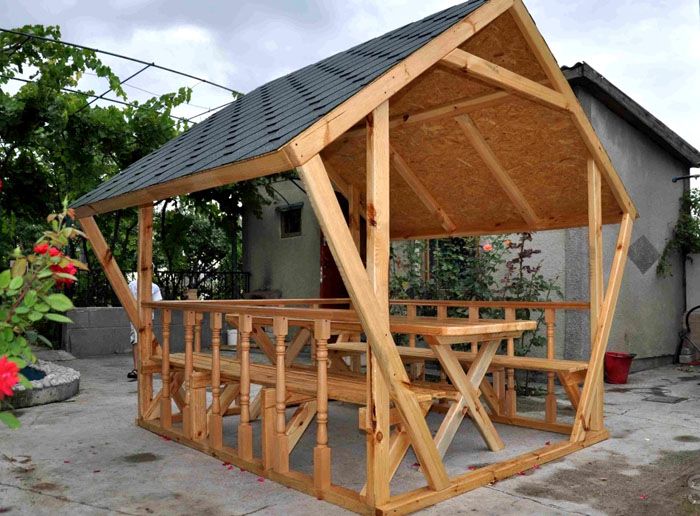 ภาพด้านล่างแสดงศาลาไม้ทำเองง่ายๆสำหรับกระท่อมฤดูร้อน:
