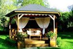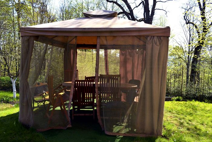 การตกแต่งศาลาเป็นส่วนที่น่าสนุกและน่าสนใจที่สุดของงาน ใช้ผ้าม่านสีสดใสแขวนกระถางดอกไม้เป็นของตกแต่ง ตามหลักการแล้วคุณต้องจัดศาลาในทิศทางสไตล์เฉพาะบางอย่างที่ตรงกับการออกแบบสวนและอารมณ์ของคุณ