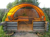 เหนือสิ่งอื่นใดโพลีคาร์บอเนตเก็บความร้อนได้ดีดังนั้นในศาลาดังกล่าวคุณสามารถพักผ่อนได้แม้ในช่วงปลายฤดูใบไม้ร่วง จากข้อบกพร่องนั้นควรค่าแก่การกล่าวถึงเฉพาะความไวของโพลีคาร์บอเนตต่อแสงอัลตราไวโอเลต แสงแดดโดยตรงทำให้เปราะบาง ศาลาโพลีคาร์บอเนตสำหรับมุมที่เงียบสงบในสวนของคุณนั้นสร้างได้ง่ายๆด้วยมือของคุณเอง คุณเพียงแค่ต้องสร้างโครงไม้หรือโลหะและยึดวัสดุรังผึ้งไว้
