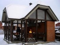 ในความเป็นจริงสิ่งก่อสร้างแบบปิดคือ บ้านฤดูร้อน... ที่นี่ไม่เพียง แต่นั่งในตอนเย็นเท่านั้น แต่ยังสามารถใช้ชีวิตได้อย่างเต็มที่เป็นเวลาหลายวัน ดังนั้นหากคุณต้องการมีแขกรับเชิญในช่วงสุดสัปดาห์นี่เป็นตัวเลือกที่ยอดเยี่ยม