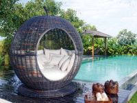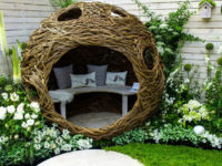 ศาลาหวายทำจากกิ่งก้านของต้นไม้ในสวนและเถาวัลย์