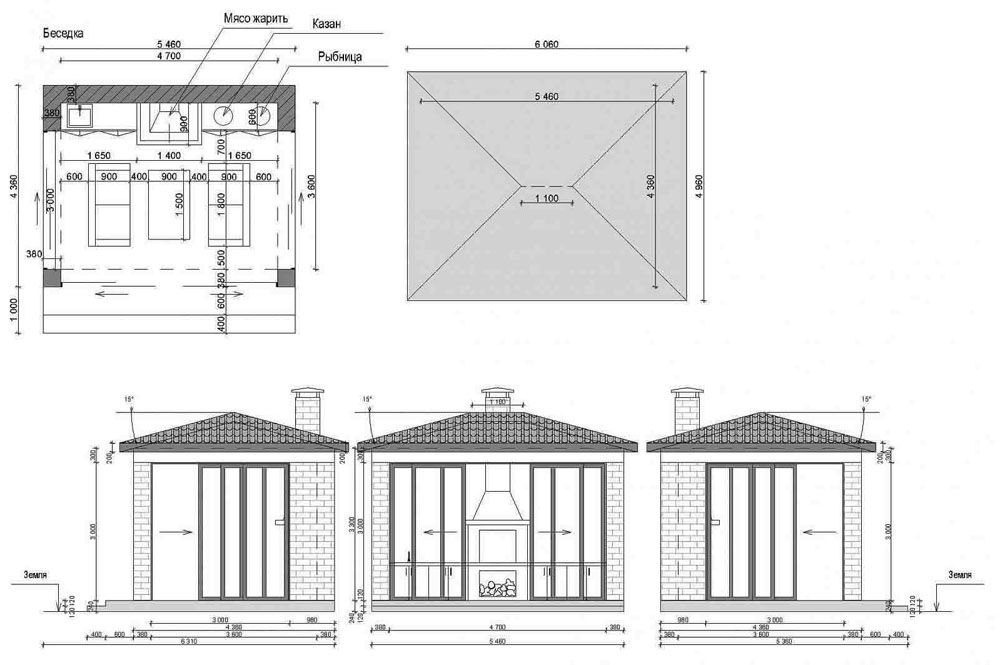 การก่อสร้างใด ๆ เริ่มต้นด้วยโครงการ สำหรับศาลาคุณสามารถวาดโครงการด้วยตัวคุณเองหรือใช้ประโยชน์จากข้อเสนอพิเศษของช่างฝีมือพื้นบ้านจากเวิลด์ไวด์เว็บ ตัวอย่างเช่นภาพวาดศาลาทำด้วยตัวเองสองสามภาพที่เราพบสำหรับคุณบนอินเทอร์เน็ต