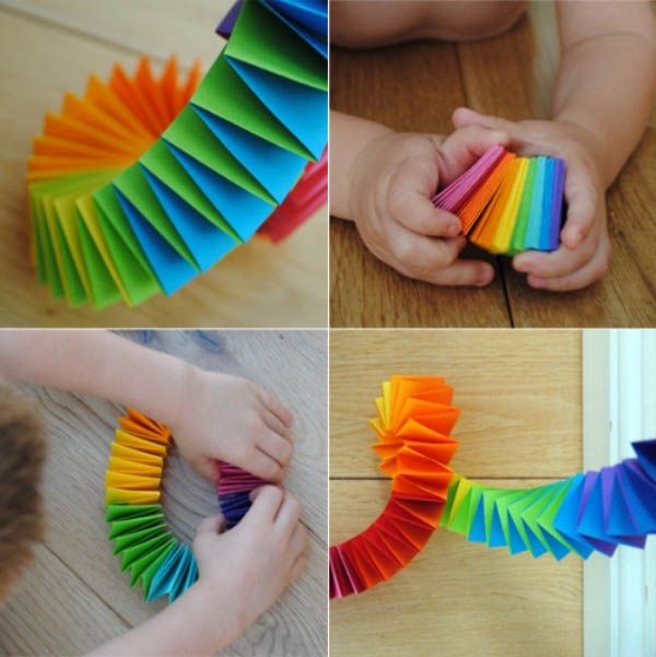 ด้วยการใช้แถบสองสีที่แตกต่างกันคุณสามารถสร้างงานฝีมือที่เป็นต้นฉบับได้เช่นหีบเพลงที่ไม่ได้มาตรฐานพับและยืดได้ ในการทำหีบเพลงยาวคุณจะต้องใช้กระดาษสีหลายแถบ