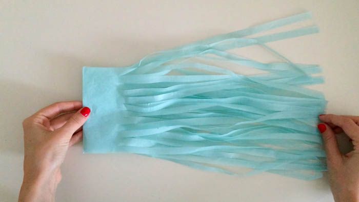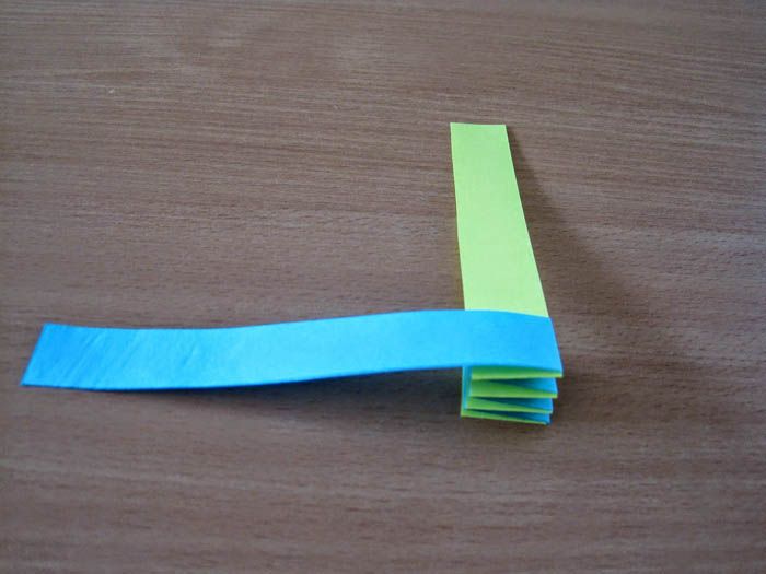 เราใช้แถบแคบและยาวสองเส้นแล้วใช้โดยให้ปลายตั้งฉากซึ่งกันและกัน เรากาวเคล็ดลับด้วย PVA เราเริ่มงอแถบเข้าหากัน ทันทีที่แถบสิ้นสุดลงเราจะติดแถบใหม่เข้ากับมัน