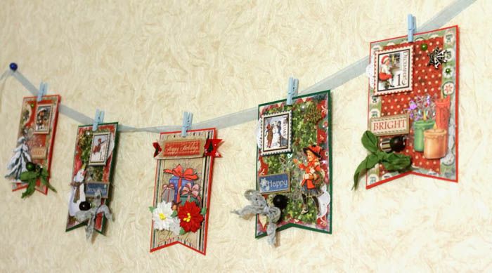 การ์ดมักทำจากเศษกระดาษและองค์ประกอบเพิ่มเติม แต่จากการ์ดวันหยุดดังกล่าวคุณสามารถรวบรวมพวงมาลัยที่สวยงามอย่างน่าทึ่ง