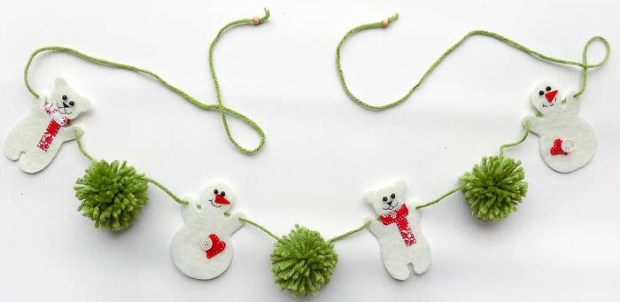 Pompons ที่ทำจากด้ายทำด้วยผ้าขนสัตว์ไม่นาน แทนที่จะเป็นรูปหมีคุณสามารถใช้ลูกปัดขนาดใหญ่รูปกระดาษแข็งสักหลาดกรวย