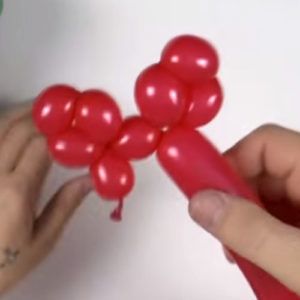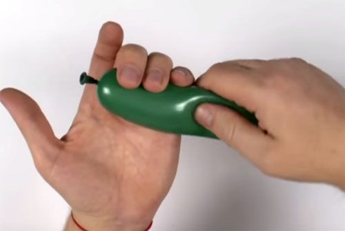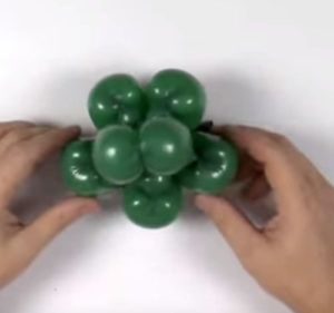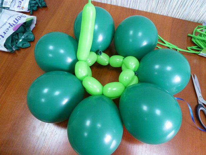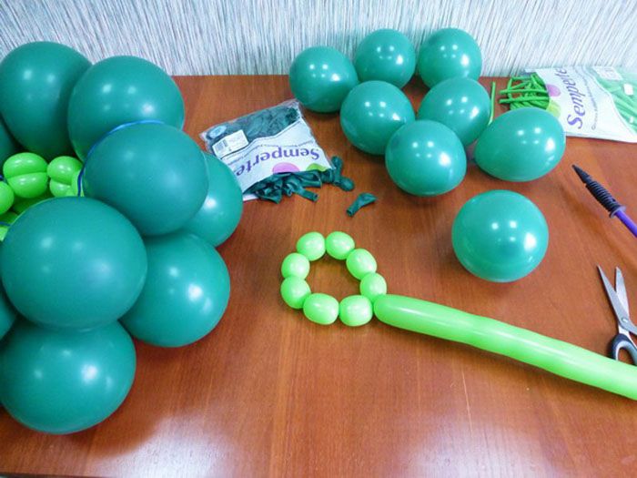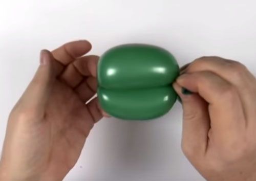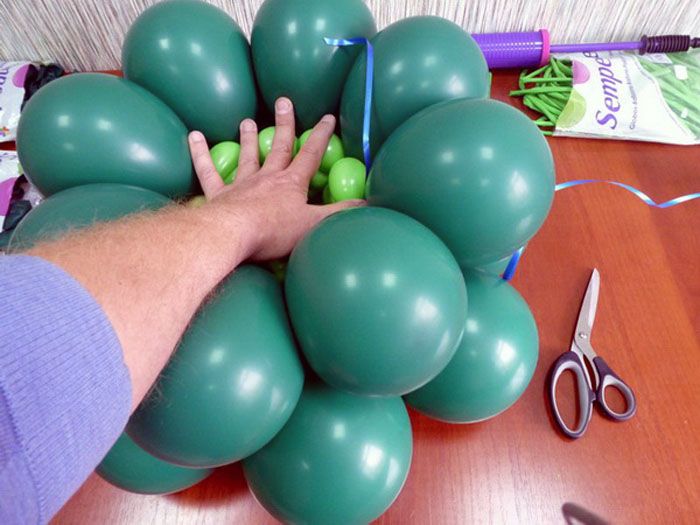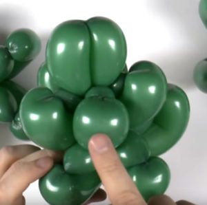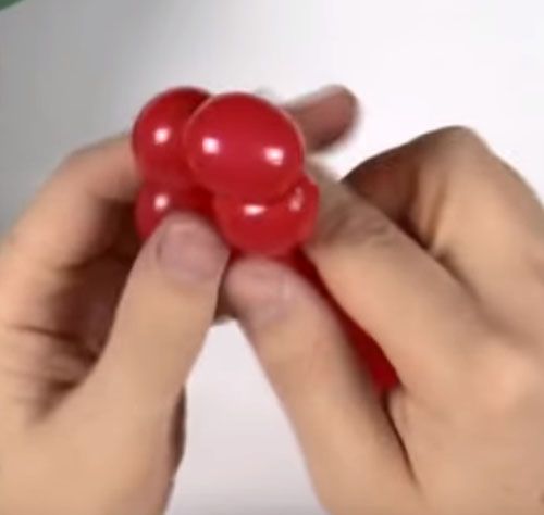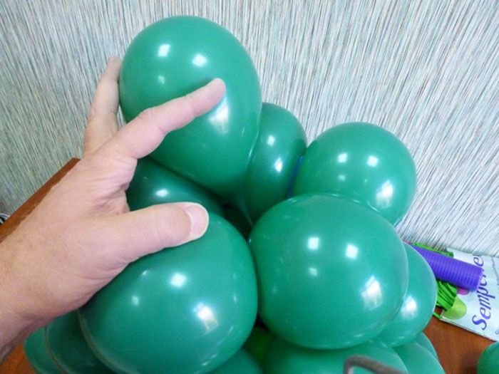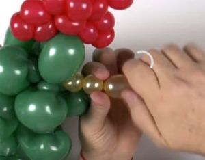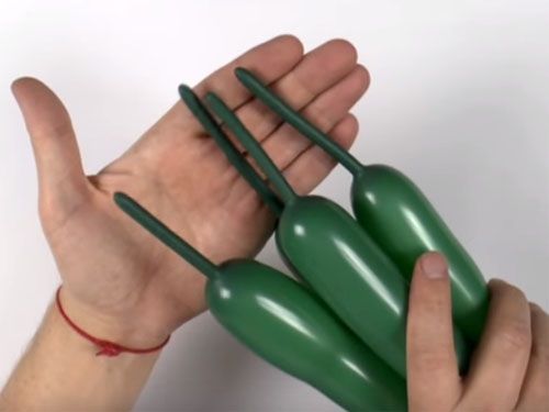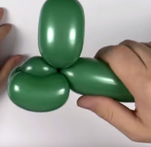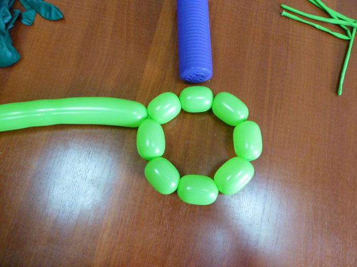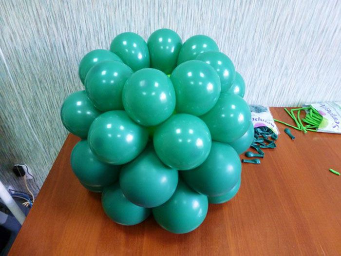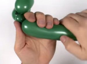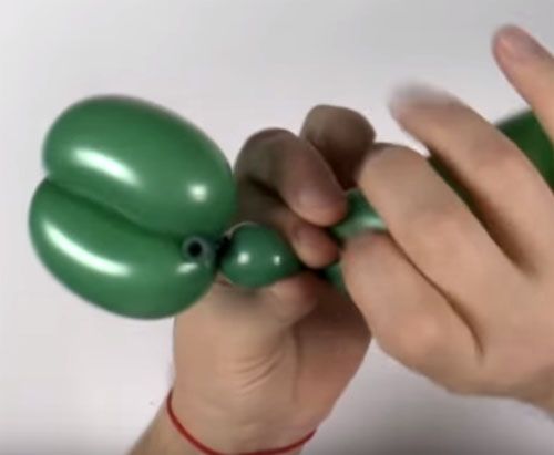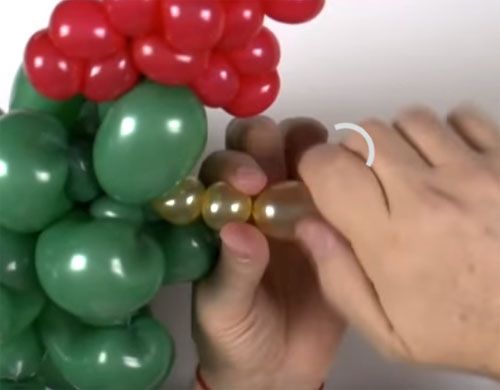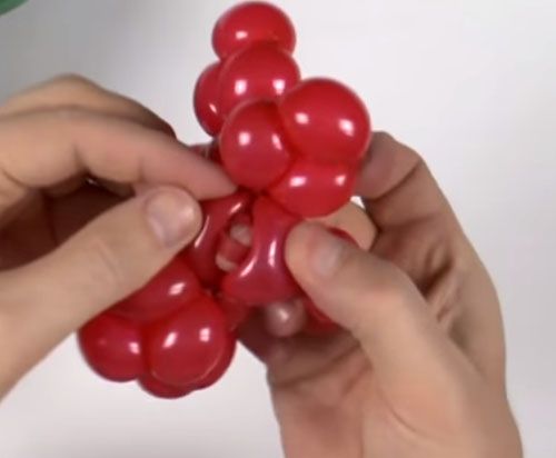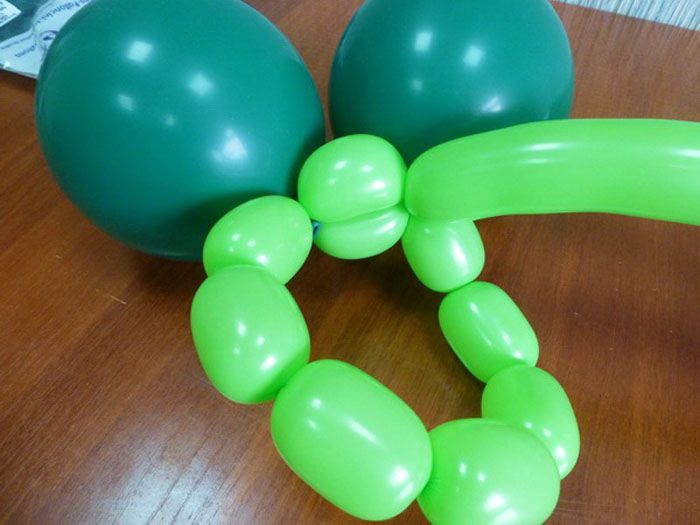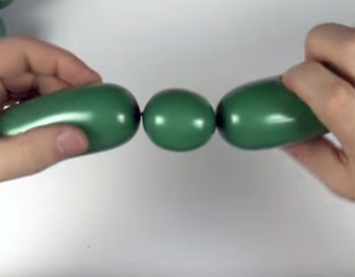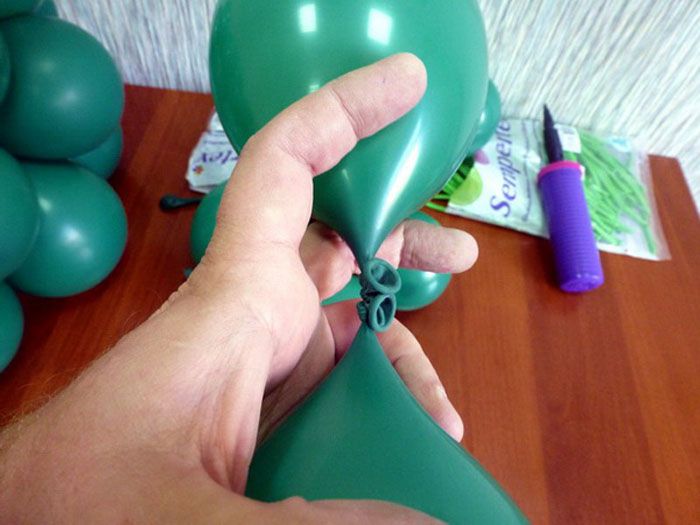 เรายึดลูกบอลขนาดใหญ่ทีละลูกทำฟองแล้วบิดเป็นข้อต่อ โดยรวมแล้วในแถวแรกเราจะได้ลูกบอลขนาดใหญ่แปดลูก เราระเบิดบอลยาวที่เหลือและบิดด้วยลูกบอลขนาดใหญ่เพื่อความน่าเชื่อถือ
