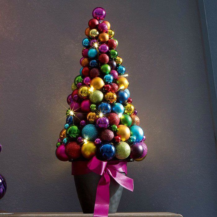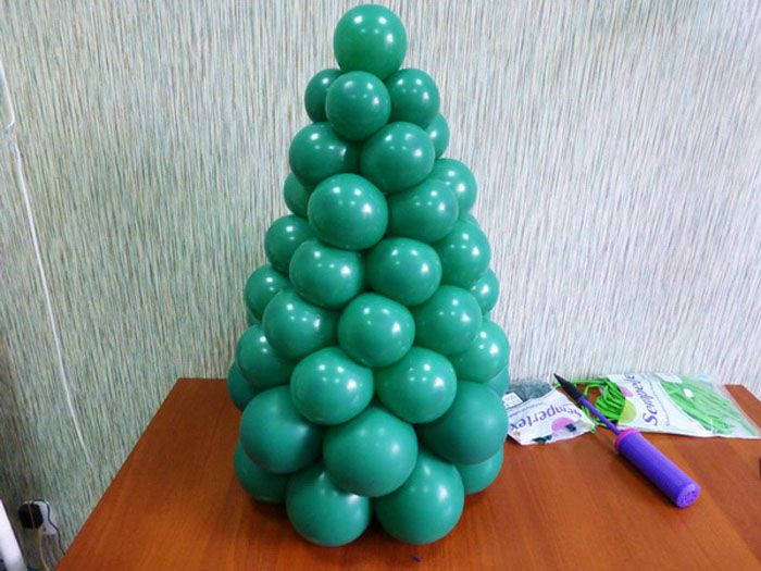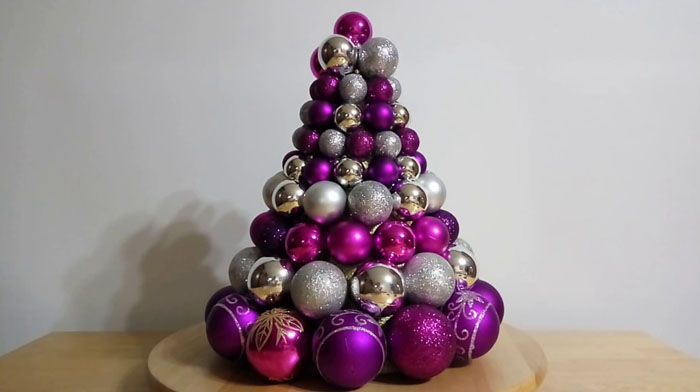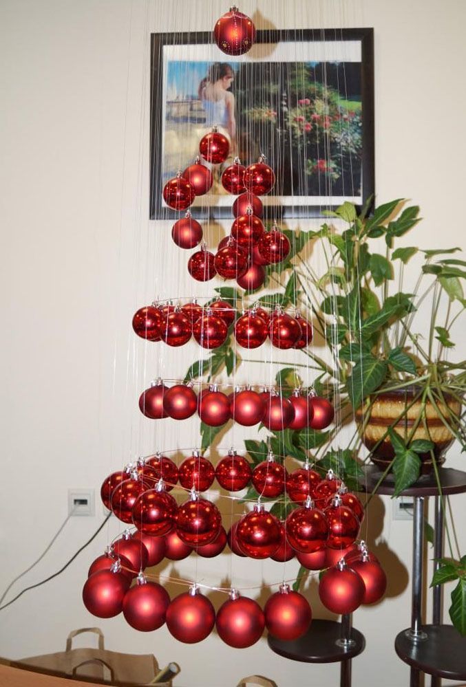 ต้นคริสต์มาสที่ทำจากลูกบอลประดับด้วยลูกบอลขนาดเล็กดูน่าสนใจ ความยากลำบากทั้งหมดคือการเชื่อมโยงเข้าด้วยกันอย่างไร