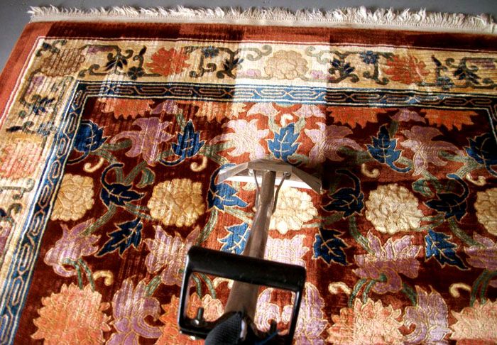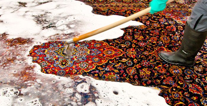 ไม่ควรทำพรมไหมให้เปียกหากไม่จำเป็นจริงๆมันอาจถูกทำลายลงอย่างสิ้นหวังจากการทำความสะอาดที่ไม่เป็นมืออาชีพ