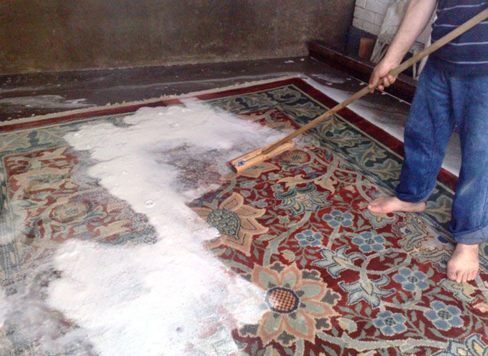 เพื่อความสดชื่นให้เช็ดพรมด้วยฟองน้ำด้วยสารละลาย 1 ช้อนโต๊ะ ช้อนต่อน้ำหนึ่งลิตร เมื่อแห้งแล้วกลิ่นไม่พึงประสงค์จะหายไปพร้อมกับกลิ่นน้ำส้มสายชูและสีที่เคลือบจะสว่างขึ้น ปฏิกิริยาของเบกกิ้งโซดาและน้ำส้มสายชูยังสามารถเป็นประโยชน์ต่อพนักงานต้อนรับ วิธีทำความสะอาดพรมด้วยเบกกิ้งโซดาที่บ้าน: