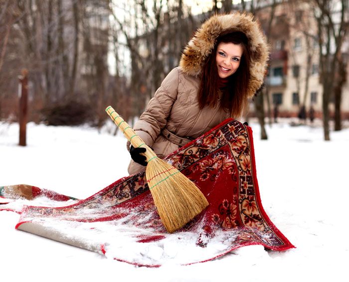 คำแนะนำ! หลังจากทำความสะอาดแล้วควรทิ้งพรมไว้ในที่เย็นสักสองสามชั่วโมง ไรฝุ่นทั้งหมดจะตายจากความหนาวเย็น