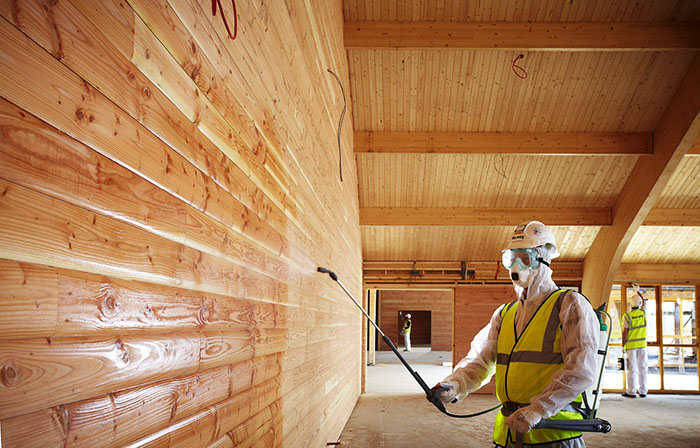 โครงสร้างไม้ของอาคารที่มีอุณหภูมิและความชื้นแปรปรวนโดยเฉพาะอย่างยิ่งต้องการการบำบัดด้วยน้ำยาฆ่าเชื้อ