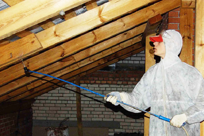 - น้ำยาฆ่าเชื้อต้องครอบคลุมทุกพื้นที่ของโครงสร้างไม้อย่างสมบูรณ์ คุณไม่สามารถออกจากสถานที่ที่ไม่ได้รับการบำบัดเนื่องจากการปนเปื้อนทางชีวภาพในอนาคตจะแพร่กระจายจากพวกมัน