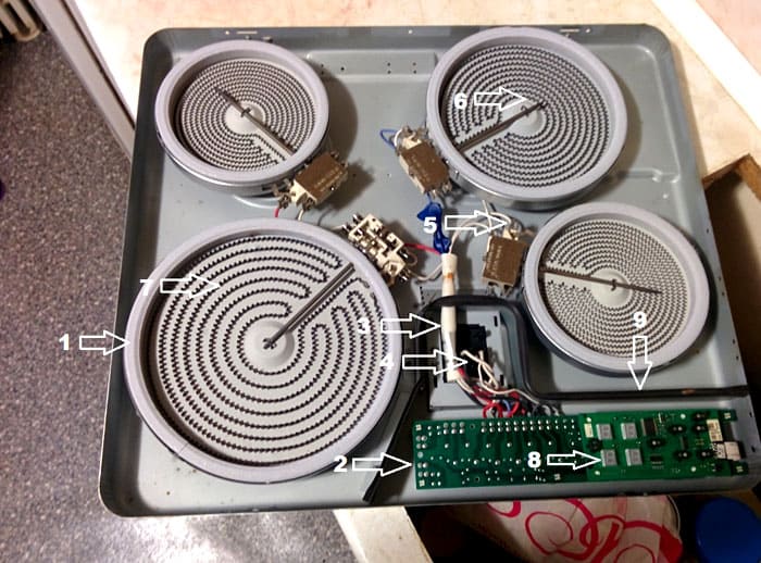 - การปรากฏตัวขององค์ประกอบความร้อนใต้พื้นผิวการปรุงอาหารทั้งหมด
