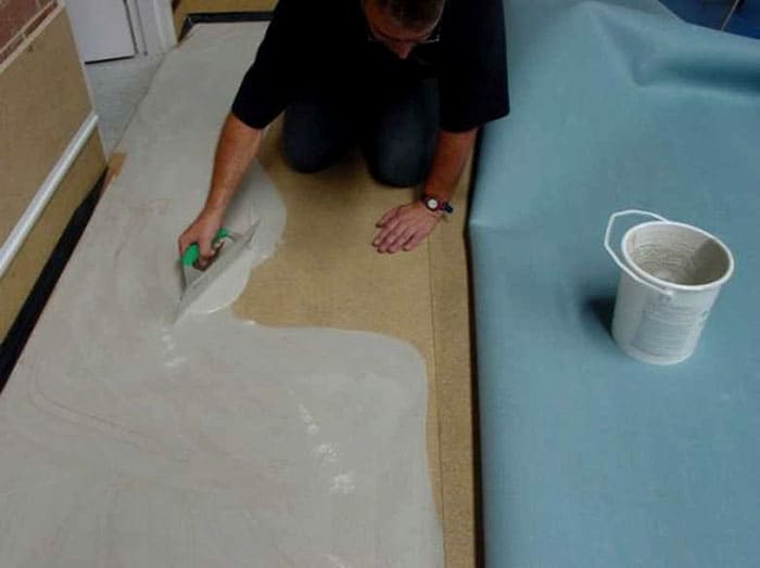 - เมื่อใช้การกระจายตัวและกาวที่มีปฏิกิริยาต้องเตรียมพื้นอย่างสม่ำเสมอ ข้อบกพร่องใด ๆ จะปรากฏบนพื้นหากไม่เกิดขึ้นทันทีหลังจากใช้งานไปสักครู่ เมื่อใช้น้ำมันดินมาสติกเป็นกาวอนุญาตให้มีข้อบกพร่องเล็กน้อยบนพื้นผิวของฐานซึ่งจะถูกปิดบังโดยการเติมความเสียหายด้วยองค์ประกอบ แต่ควรระลึกไว้เสมอว่าราคาของยางมะตอยสีเหลืองอ่อนนั้นสูงกว่ากาวกระจายทั่วไปมาก
