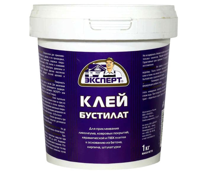 กาวที่ทำปฏิกิริยาใช้เพื่อแก้ไขเสื่อน้ำมันที่เป็นเนื้อเดียวกัน กระเบื้องพีวีซีเสื่อน้ำมันบนพื้นฐานโฟม กาวดังกล่าวไม่เหมาะสำหรับพื้นผิวสักหลาดและผ้า