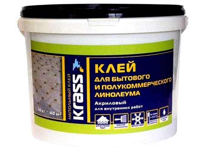 - อะคริเลต... เรซินเทอร์โมพลาสติกใช้เป็นกาว องค์ประกอบมีความหนืดสูงและใช้สำหรับการเชื่อมเสื่อน้ำมันที่แตกต่างกันและเป็นเนื้อเดียวกันรวมทั้งการเคลือบโดยใช้ปอและเส้นใยสังเคราะห์ แนะนำให้ใช้ในห้องที่มีการจราจรหนาแน่น องค์ประกอบช่วยให้มั่นใจได้ถึงการยึดเกาะที่สูงของพื้นซึ่งครอบคลุมกับพื้นผิวที่ดูดความชื้น