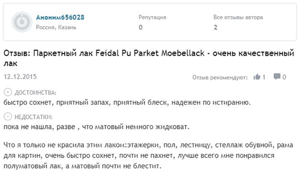 บทวิจารณ์ของ Feidal Pu Parket Moebellack ไม้ปาร์เก้เคลือบเงา: