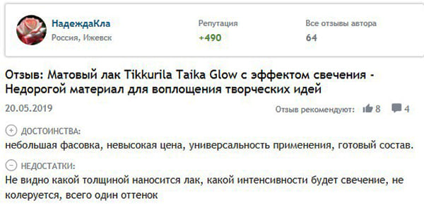 รีวิวของ Tikkurila Taika Glow เคลือบเงาพร้อมเอฟเฟกต์เรืองแสง: