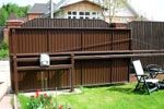 นักออกแบบแนะนำให้เลือกพื้นหลังสำหรับรั้วเพื่อให้เข้ากับหลังคาบ้าน