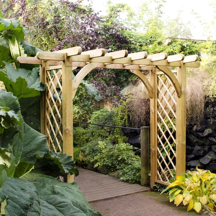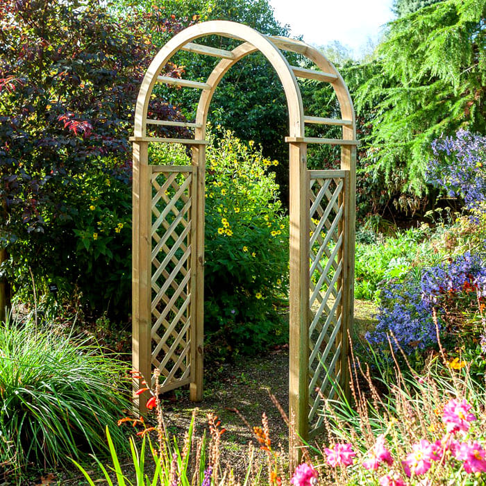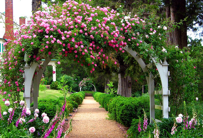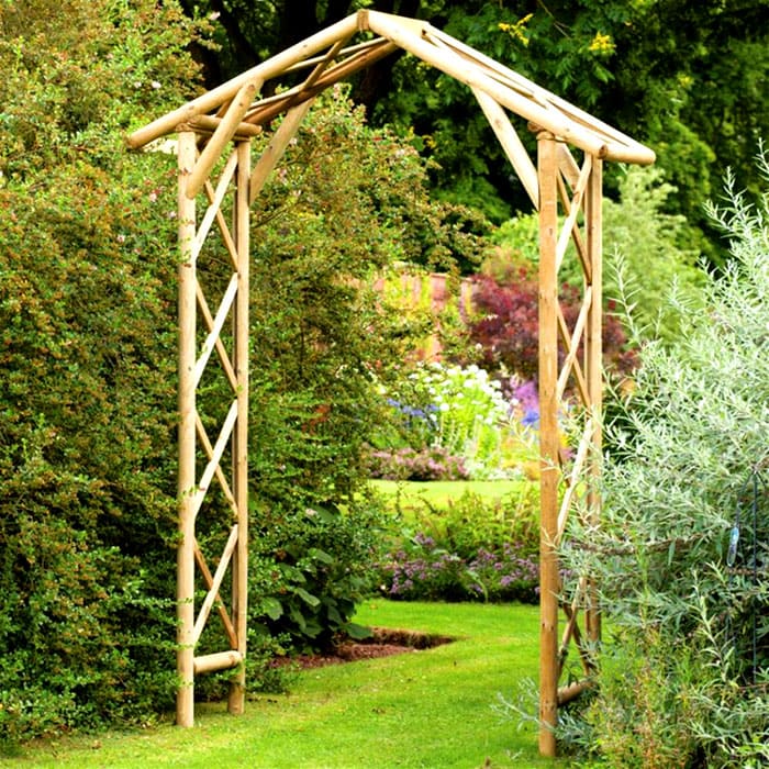 ซุ้มประตูมีส่วนร่วมในการแบ่งเขตของดินแดนแยกโซนต่าง ๆ ตกแต่งทางเข้า โครงสร้างโค้งขึ้นอยู่กับรูปแบบของสวนที่ทำจากไม้หรือโลหะ