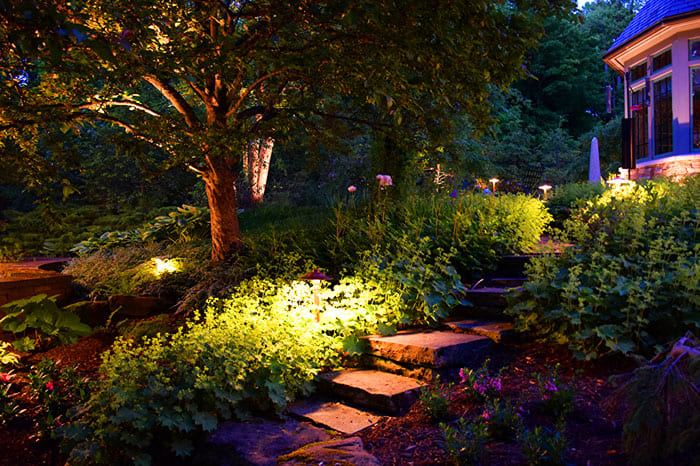 ไฟฉายอาจมีขนาดเล็ก: ติดตั้งไว้ที่พื้นโดยตรงและทำงานกับแบตเตอรี่พลังงานแสงอาทิตย์