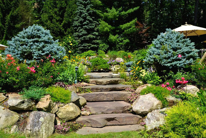 บันไดใช้สำหรับจัดสวนบนทางลาดชัน หากไม่มีความลาดชันที่เด่นชัด แต่คุณต้องการบันไดจริงๆคุณสามารถสร้างบันไดเล็ก ๆ ซึ่งช่วยให้ความสูงของดินแตกต่างกันได้ ภาพแสดงให้เห็นว่าคุณเอาชนะการตัดสินใจนี้ได้อย่างไร