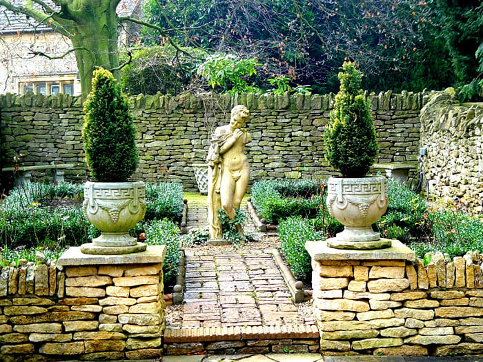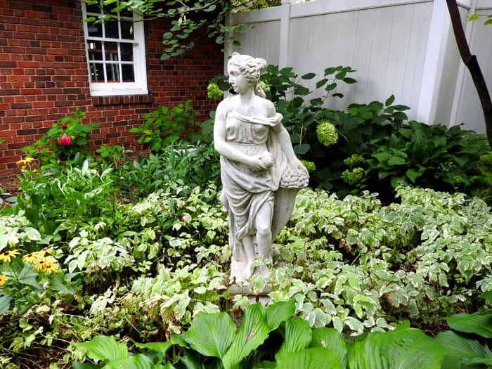 หากคุณใช้เสาและตัวเลขที่ทรุดโทรมเป็นพิเศษสวนจะดูโบราณและลึกลับ ข้อดีของงานประติมากรรมคือคุณสามารถหาผลิตภัณฑ์ที่เหมาะสมสำหรับการออกแบบโวหารได้