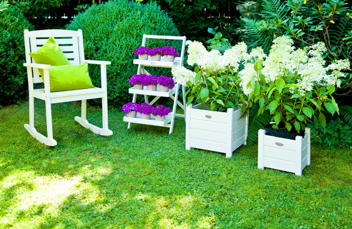 รวมถึงเฟอร์นิเจอร์ในสวนทุกชนิด โต๊ะเก้าอี้, ม้านั่ง, ชิงช้า. พวกเขาทำจากพลาสติกไม้คอนกรีตโลหะหวาย