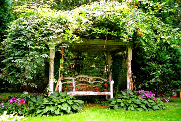 การแบ่งเขตมุมที่ซ่อนอยู่: pergolas, arches และ bosquets