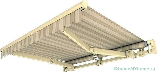 - กันสาดเป็นตัวเลือกพับแบบก้านโยก ใช้สำหรับโครงสร้างยาว