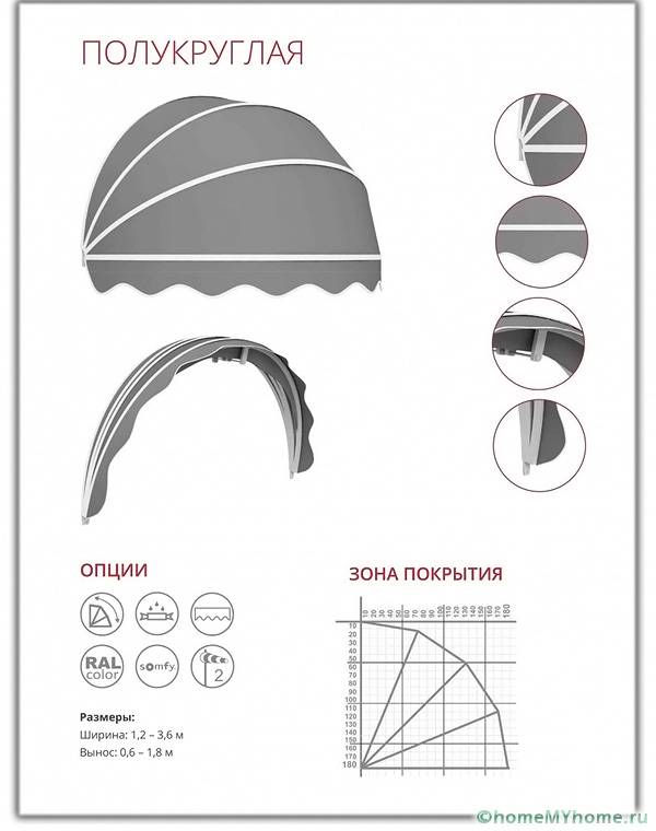 ขนาดของกันสาดขึ้นอยู่กับขนาดของช่องหน้าต่างระเบียงหรือเฉลียง รุ่นดังกล่าวแตกต่างจากกันสาดในพารามิเตอร์ต่อไปนี้: