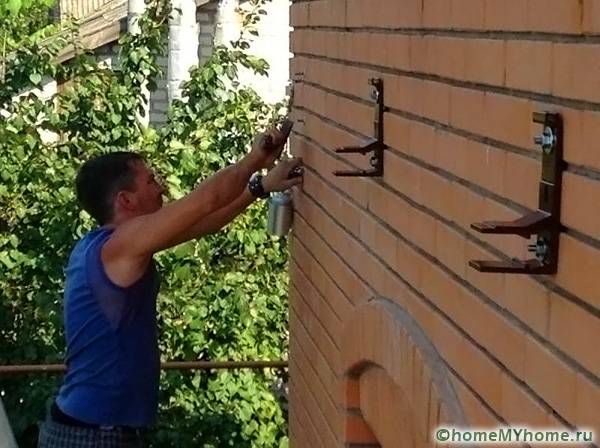 - การทำเครื่องหมายของสถานที่สำหรับยึดวงเล็บและกรอบจะดำเนินการ