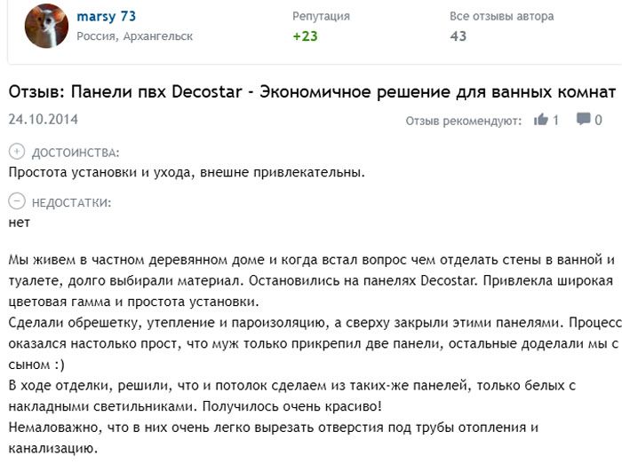 ข้อเสนอแนะเกี่ยวกับแผง PVC "Decostar":