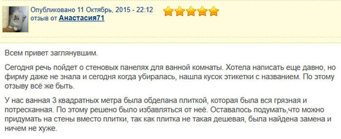 การมีข้อเสนอจำนวนมากทั้งในแง่ของวัสดุและรูปแบบการออกแบบทำให้สามารถนำแนวคิดที่น่าทึ่งที่สุดของนักออกแบบและนักพัฒนาไปใช้ องค์กรการค้าและ บริษัท ผู้ผลิตมีแคตตาล็อกแผงที่สามารถติดตั้งในห้องน้ำพร้อมรูปถ่ายและคำอธิบายลักษณะของมันการปรากฏตัวของสิ่งพิมพ์ดังกล่าวช่วยให้คุณสามารถเลือกวัสดุตกแต่งที่คุณต้องการแม้ว่าจะไม่มีให้บริการในขณะที่เยี่ยมชมองค์กรการค้าก็ตาม