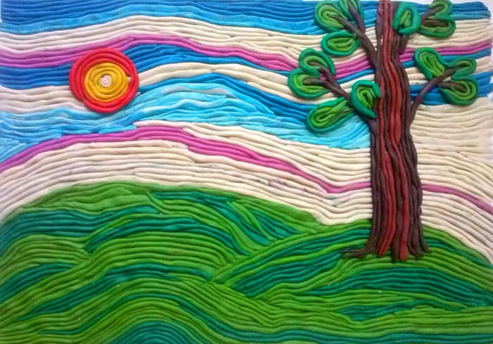 งานฝีมือจากดินน้ำมันบนกระดาษเปิดสู่โลกแห่งความคิดสร้างสรรค์ที่ไม่รู้จักมาจนบัดนี้ การใช้งานมักใช้ในรูปแบบกระดาษหรือกระดาษแข็ง แต่ก็สามารถทำได้ด้วยดินน้ำมัน คุณต้องใช้กระดาษแข็งหนาเป็นฐาน