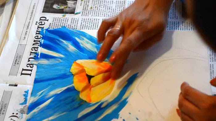 - 4 งานฝีมือจากกระดาษแข็งและดินน้ำมันในรูปแบบแอปพลิเคชัน: การวาดภาพด้วยวัสดุที่ไม่ใช่แบบดั้งเดิม