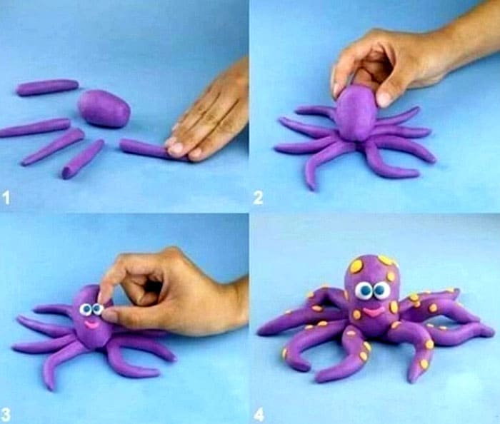 งานฝีมือดินน้ำมันง่ายๆสำหรับเด็กปั้นได้ง่ายและรวดเร็วเด็ก ๆ ใช้เทคนิคการสร้างแบบจำลองทั้งหมดรวมกันแนบหรือแยกองค์ประกอบต่างๆเรียนรู้ที่จะทำให้ข้อต่อเรียบเนียนพยายามทำให้งานฝีมือของพวกเขาดูสมจริง