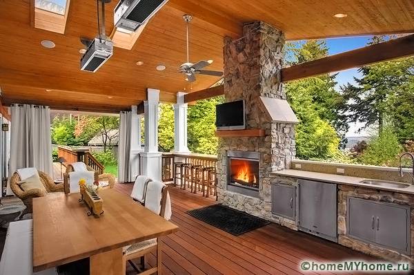 - จากโครงสร้างเพิ่มเติมคุณสามารถสร้างห้องฤดูร้อนซึ่งสะดวกในการจัดงานเลี้ยงที่เป็นมิตร ในระหว่างการก่อสร้างเสาหรือ มูลนิธิแถบ... สำหรับผนังใช้กระดาน อิฐ หรือ ไม้อัด... เพื่อให้แน่ใจว่าห้องมีแสงสว่างเพียงพอผนังสามารถเคลือบบางส่วนได้หลังคาทำในรุ่นน้ำหนักเบา