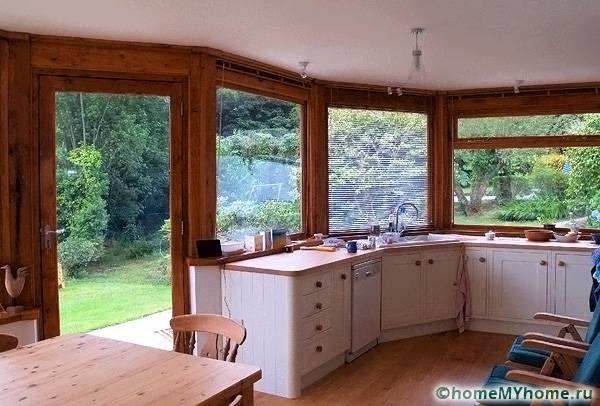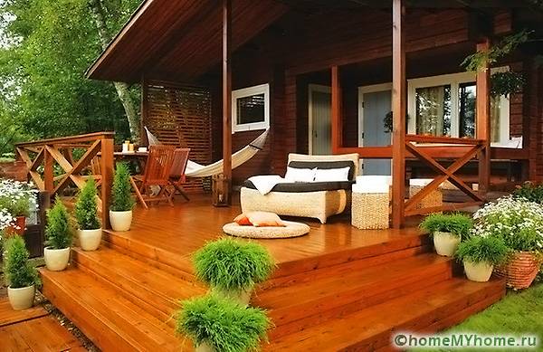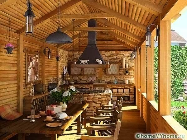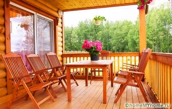 ระเบียงฤดูร้อนสร้างขึ้นจากวัสดุจำนวนเล็กน้อยเนื่องจากมีมุมมองที่เปิดกว้างและติดตั้งในสไตล์ชนบท