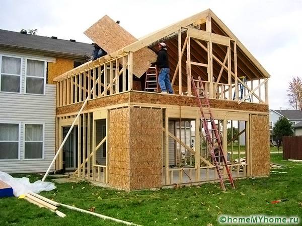 เมื่อทำการต่อเติมบ้านจากกรอบจะไม่ต้องเสียค่าใช้จ่ายจำนวนมาก นี่คือตัวเลือกงบประมาณ การก่อสร้างจะดำเนินการต่อไป ฐานเฟรมซึ่งประกอบด้วยคาน หรือแถบที่ทำจากโลหะ หลังการติดตั้ง โครงสร้างเฟรม การหุ้มผนังจะดำเนินการทั้งสองด้าน สิ่งนี้ใช้ บอร์ด OSB หรือ chipboard วัสดุฉนวนกันความร้อนวางอยู่ระหว่างจาน สามารถขยายได้พอลิสไตรีนหรือขนแร่
