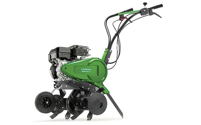 อุปกรณ์นี้มาพร้อมกับเครื่องยนต์เบนซินที่มีความจุ 1.6 ถึง 6 แรงม้าในบรรดารุ่นต่างๆยังมีเครื่องปลูกน้ำมันเบนซินแบบย้อนกลับซึ่งเหมาะสำหรับการทำงานกับดินบริสุทธิ์ ตัวอย่างเช่น Caiman EcoMax 40H C2 สามารถรองรับได้ถึง 1,000 ตร.ม. มีใบมีดเหล็กชุบแข็งที่แข็งแรงด้ามจับและล้อที่ปรับได้ตามหลักสรีรศาสตร์สำหรับการเคลื่อนย้าย