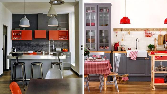 - การผสมผสานของสีเทาและสีแดงจะทำให้ห้องเย็นลงและนุ่มนวลขึ้น