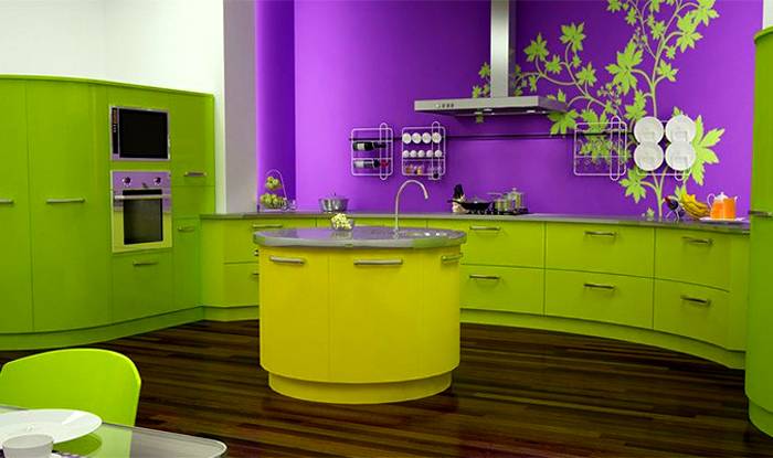 ในพื้นที่ห้องครัวจะมีเฉดสีที่หลากหลายลึกและมีสีสัน ตัวเลือกที่น่าสนใจคือจานสีเหลือง - น้ำเงินในสไตล์ทะเล เครื่องชั่งเย็นช่วยผ่อนคลายลดความอยากอาหารและให้ความสดชื่น และจานสีอุ่นช่วยกระตุ้นระบบย่อยอาหารเพิ่มความอยากอาหารและเติมพลัง