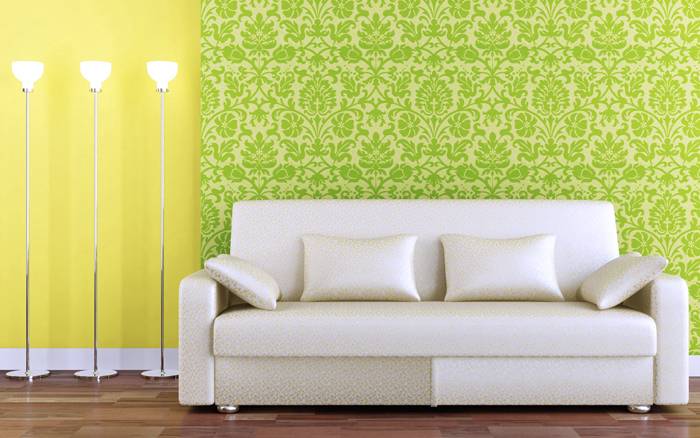 - รูปแบบความคมชัดถือว่าเป็นการใช้การผสมผสานของโทนสีตรงข้ามในสเปกตรัมสี สามารถเป็นสีเขียวและสีเหลือง ในการตกแต่งภายในเช่นนี้ควรปรับความคมชัดให้นุ่มนวลด้วยโทนสีที่นุ่มนวลขึ้น