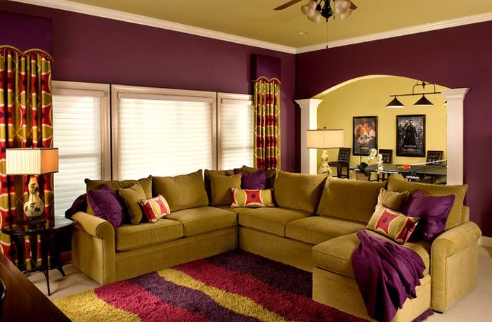 สีสำหรับห้องนั่งเล่นถูกเลือกโดยคำนึงถึงความชอบของเจ้าของห้อง สิ่งสำคัญคือการสังเกตการผสมผสานของสีที่กลมกลืนกัน